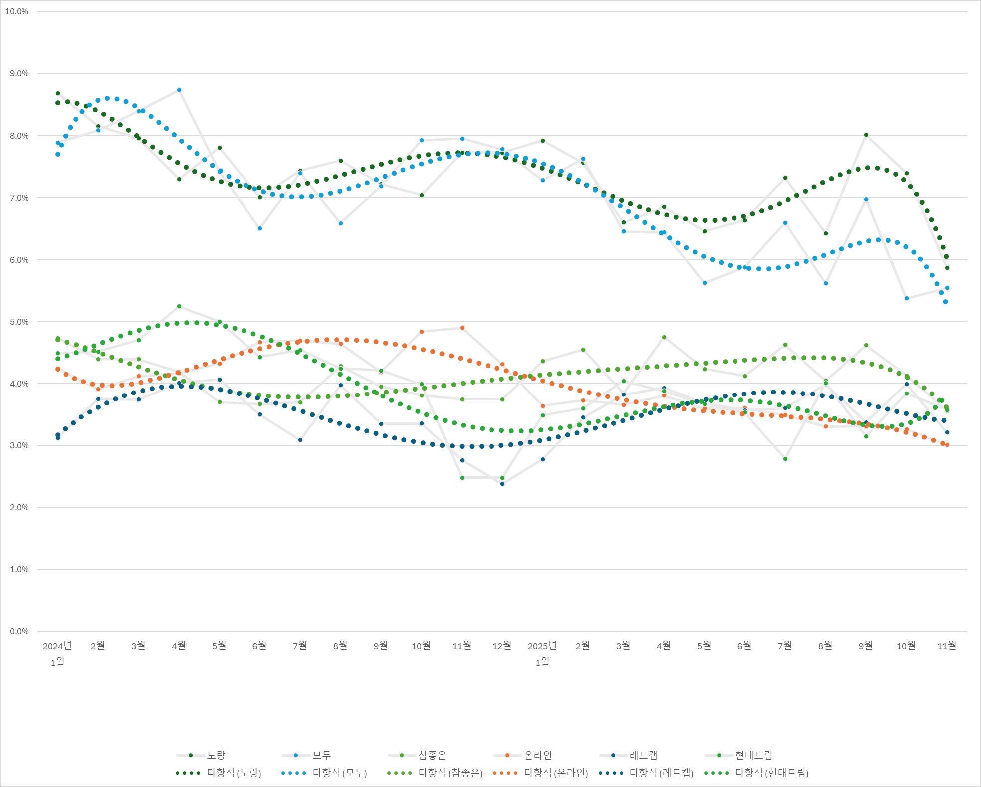 10위권 내 중위권 업체들의 실적은 이제 거의 비슷한 성적을 보이고 있네요.